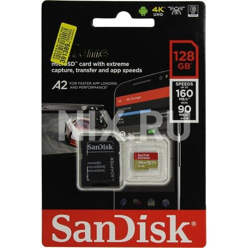 Купить Карта памяти SanDisk microSDXC 128 ГБ Class 10, V30, A2, UHS Class 3, R/W 160/90 МБ/с, адаптер на SD