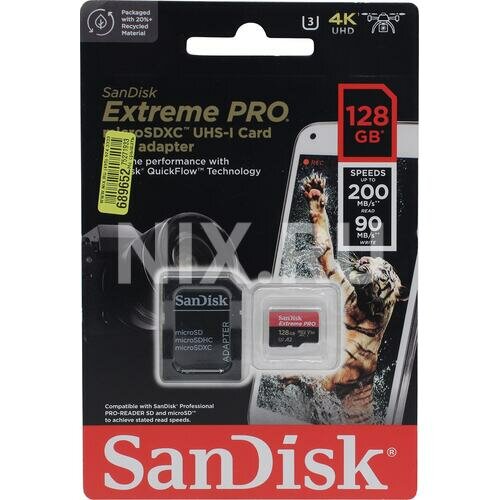 Карта памяти SanDisk Extreme Pro microSDXC 128GB UHS-I U3 V30, A2, R/W 200/90 МБ/с с адаптером