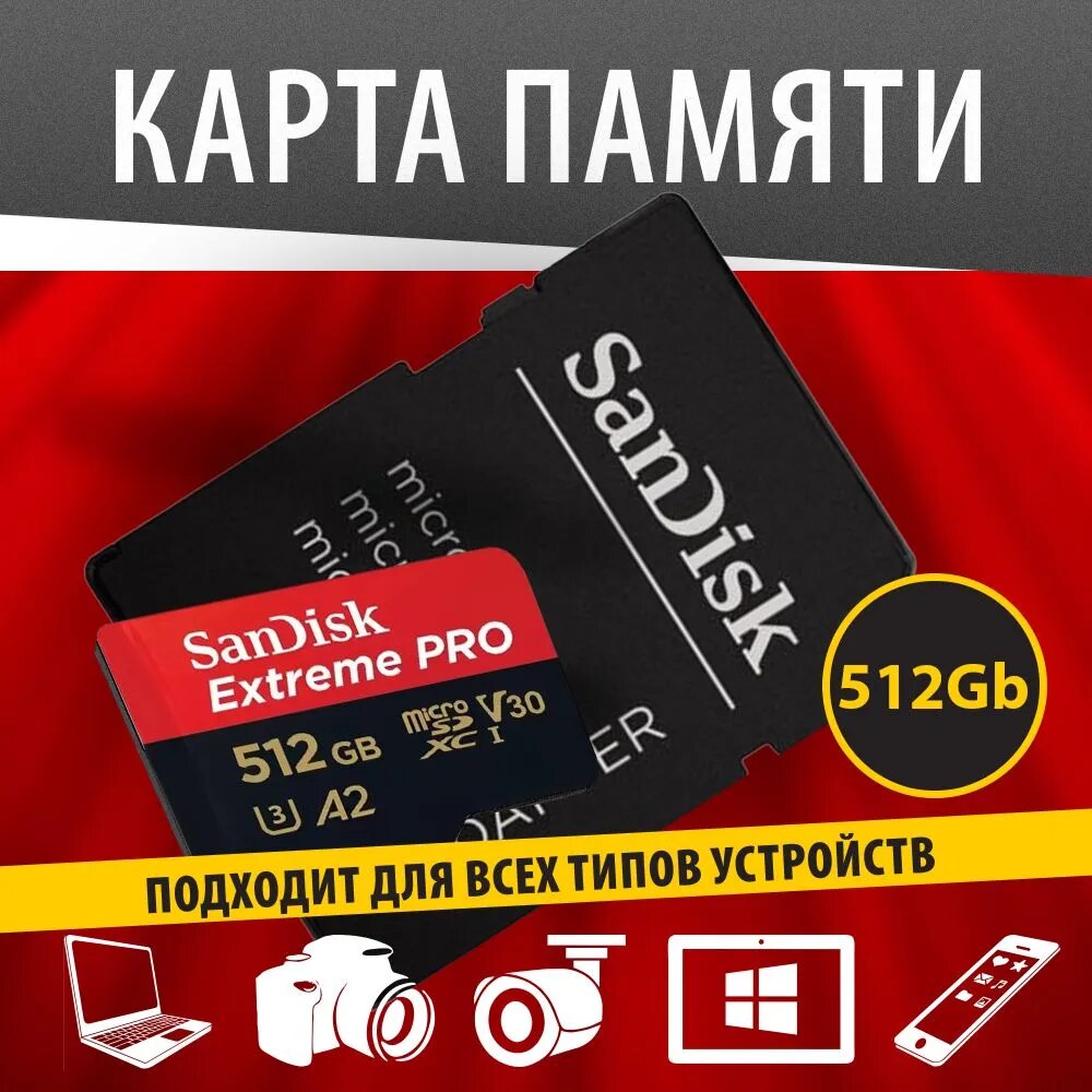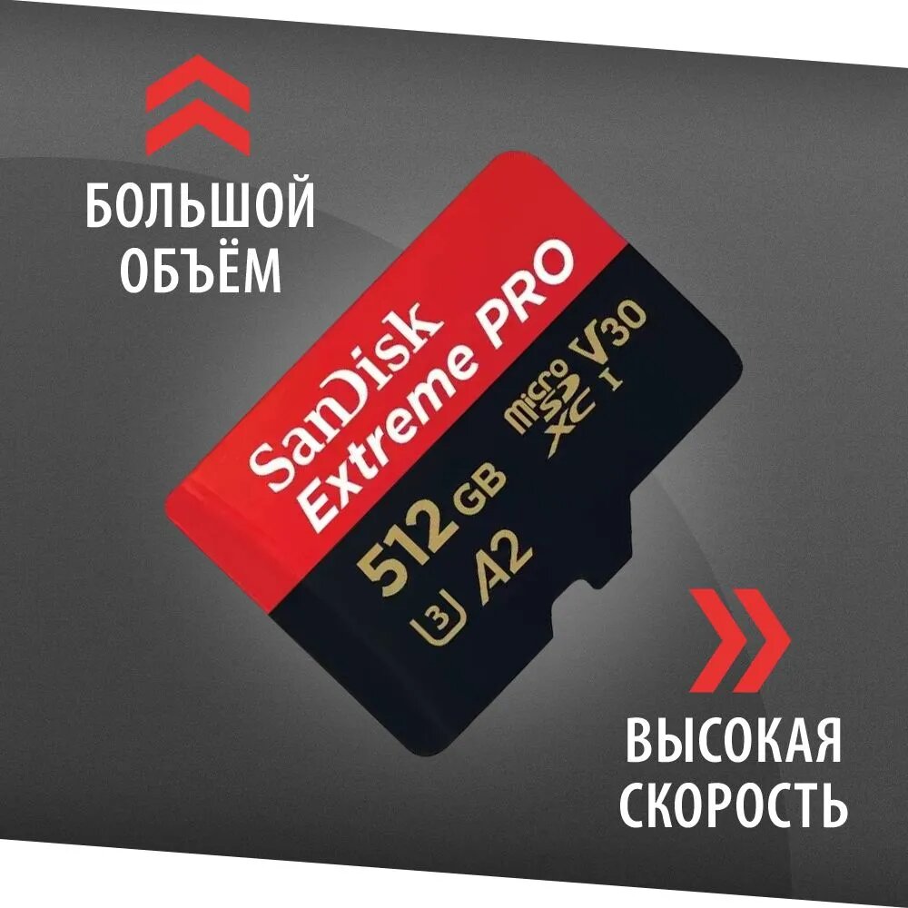 Карта памяти SanDisk microSDXC 512 ГБ Class 10, V30, A2, UHS-I U3, адаптер на SD, 1 шт.
