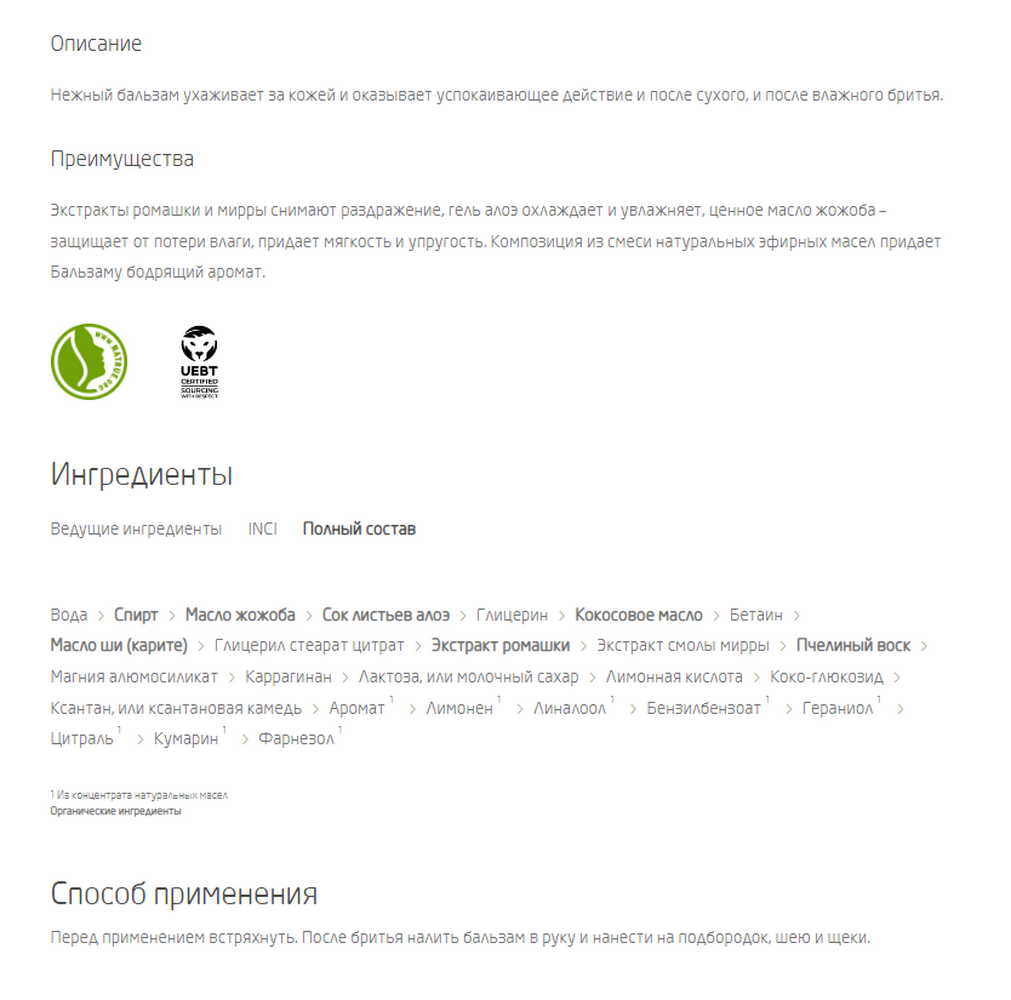 1. Первый недостаток субъективный. ЗАПАХ он вообще не мой, это первый раз, когда от средства чуть не тошнит. Обычно я не привередлевый и пользовался всем, что купил. Тут прям ни как, совсем ни как. Только когда наступила зима или притупился нюх смог им иногда пользоваться. 2. Неделю себя борол, пользовался этим средством. Эффект липкое лицо, если чуть переборщишь раздражения после бритья вне зависимости от того много средства использовал или мало. |