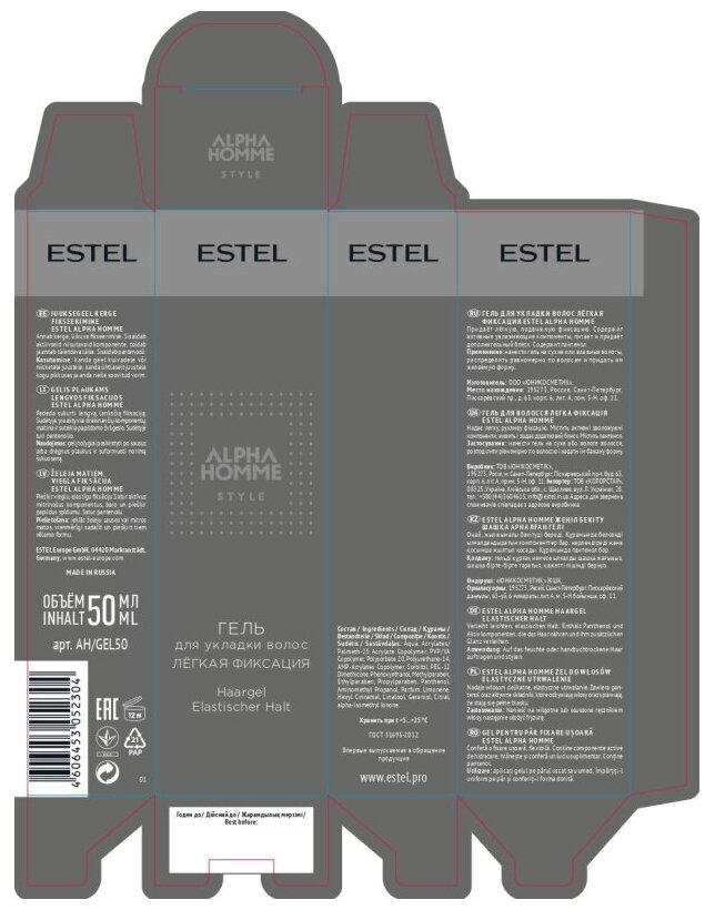 Ниже Вы можете прочитать отзывы на Гель для укладки волос легкая фиксация ESTEL ALPHA HOMME муж 50мл AH/GEL50, ознакомится с подробными характеристиками, посмотреть интересные обзоры и фотографии на Гель для укладки волос легкая фиксация ESTEL ALPHA HOMME муж 50мл AH/GEL50.