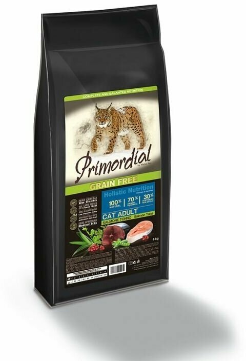 Сухой корм для кошек Primordial беззерновой, с лососем, с тунцом 6 кг