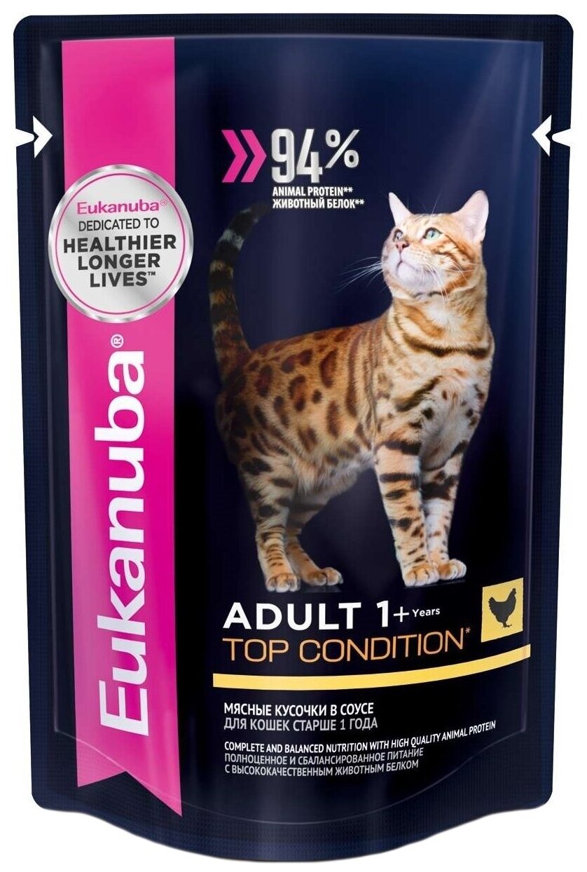 Eukanuba ADULT TOP CONDITION BEEF пауч влажный корм для взрослых кошек, говядина в соусе, 85 гр