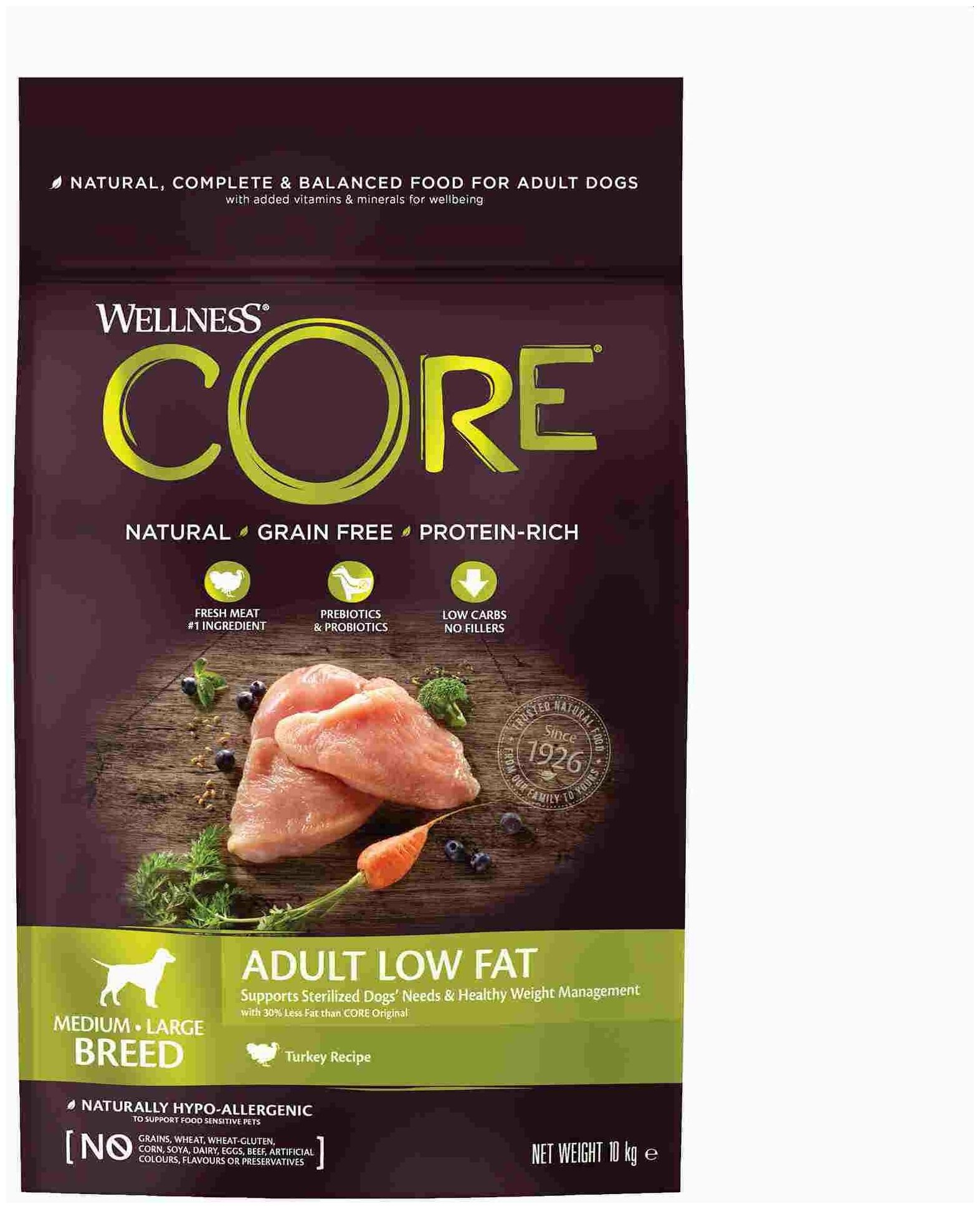 Купить Сухой корм для собак Low Fat Wellness Core беззерновой, лосось, индейка, курица 10 кг (для средних и крупных пород)