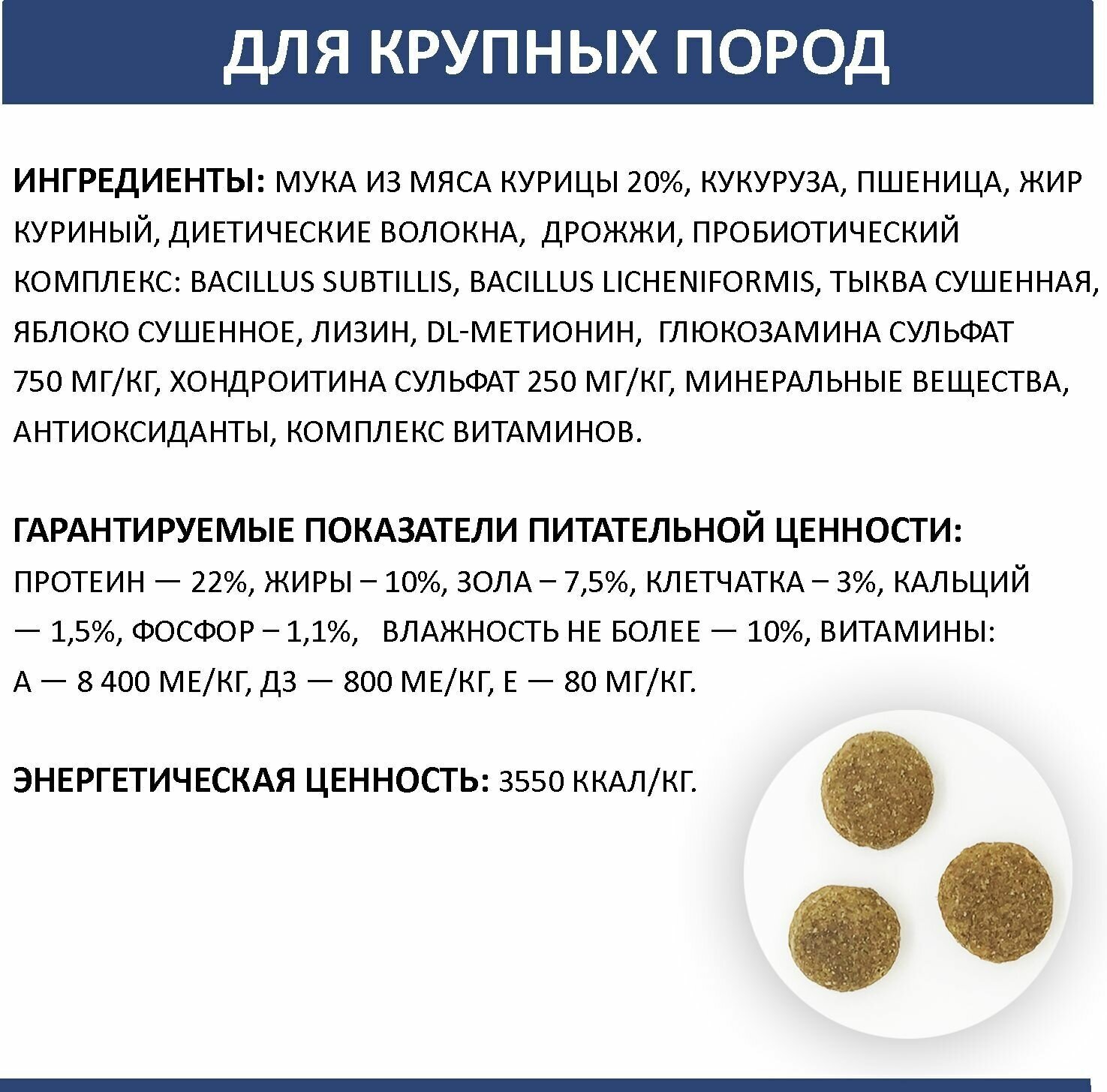 Родные корма для взрослых собак крупных пород 22/10 (10 кг)