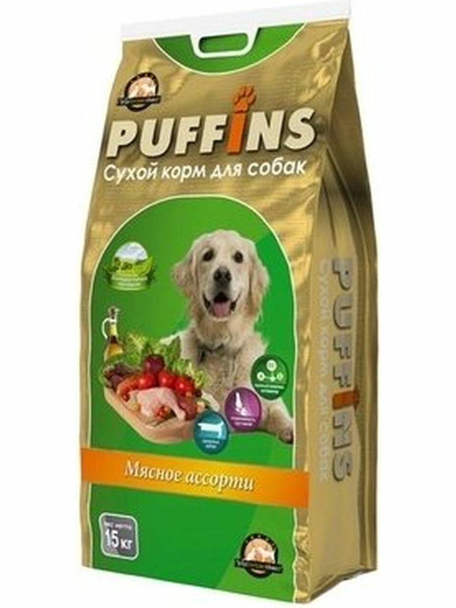 Сухой корм для собак Puffins мясное ассорти, 15кг