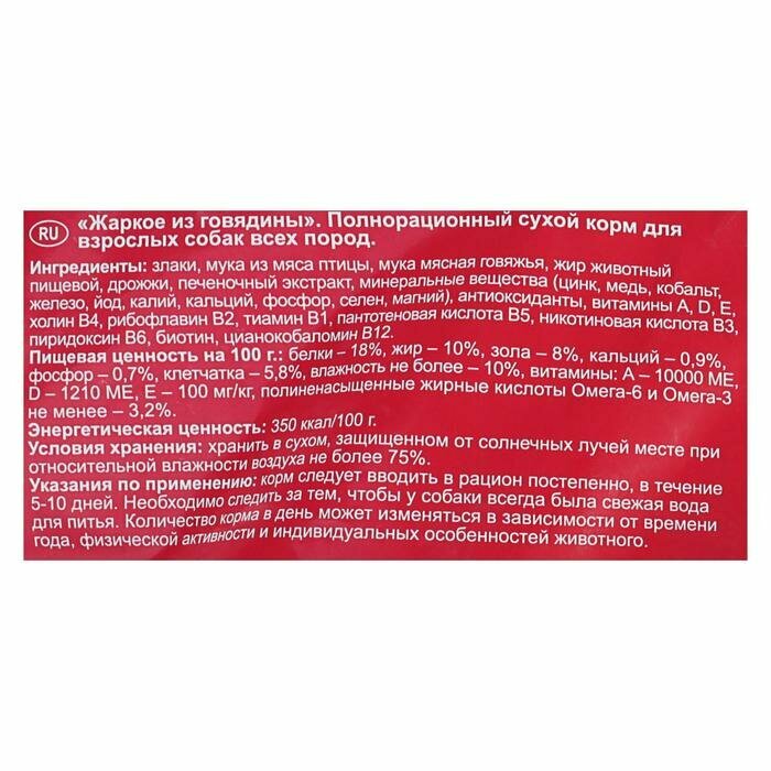 | Плюсы: | Бюджетный. Собака хорошо ест как дополнение к основному корму. |