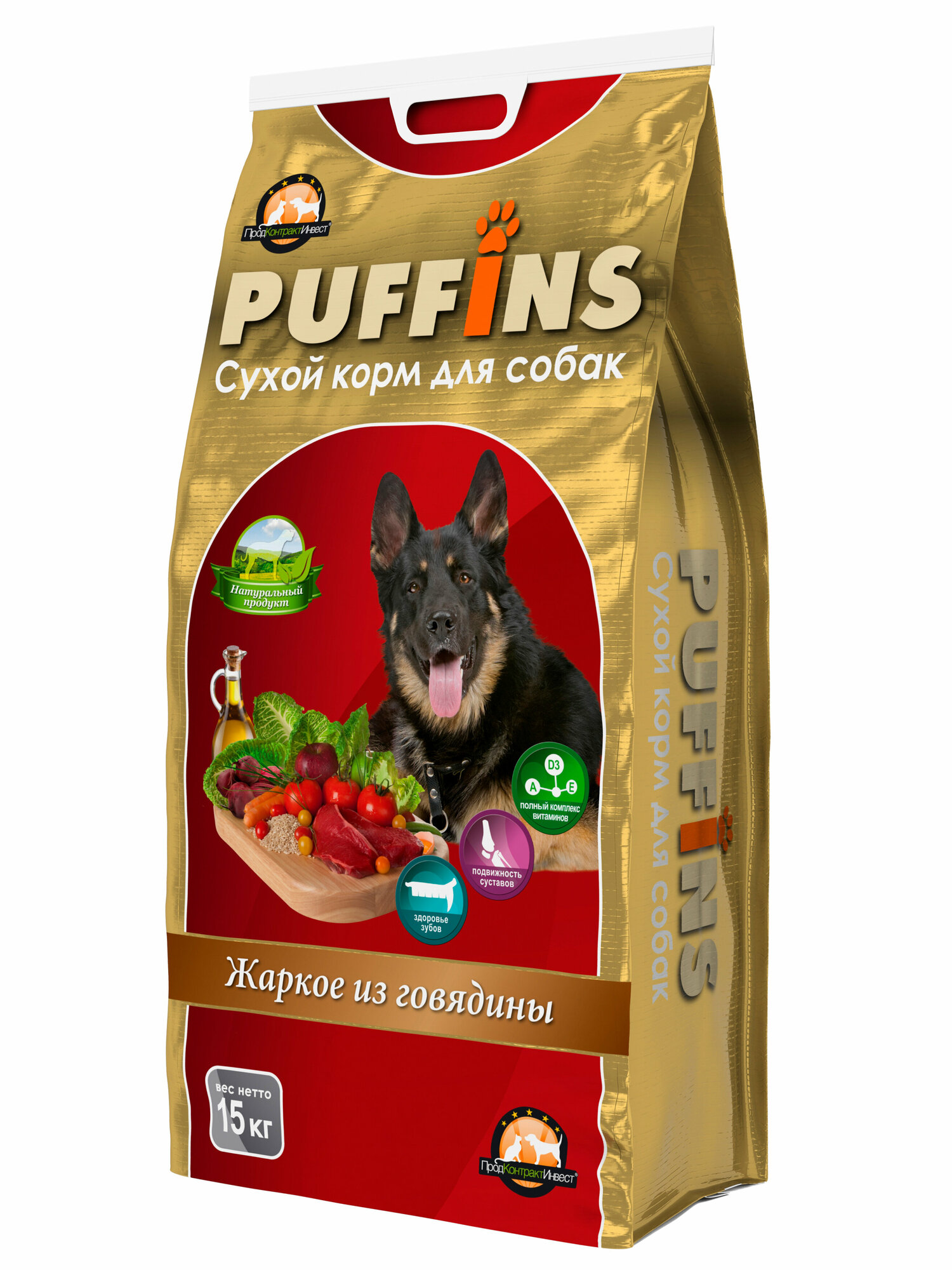 Сухой корм Puffins для собак жаркое из говядины, 15кг