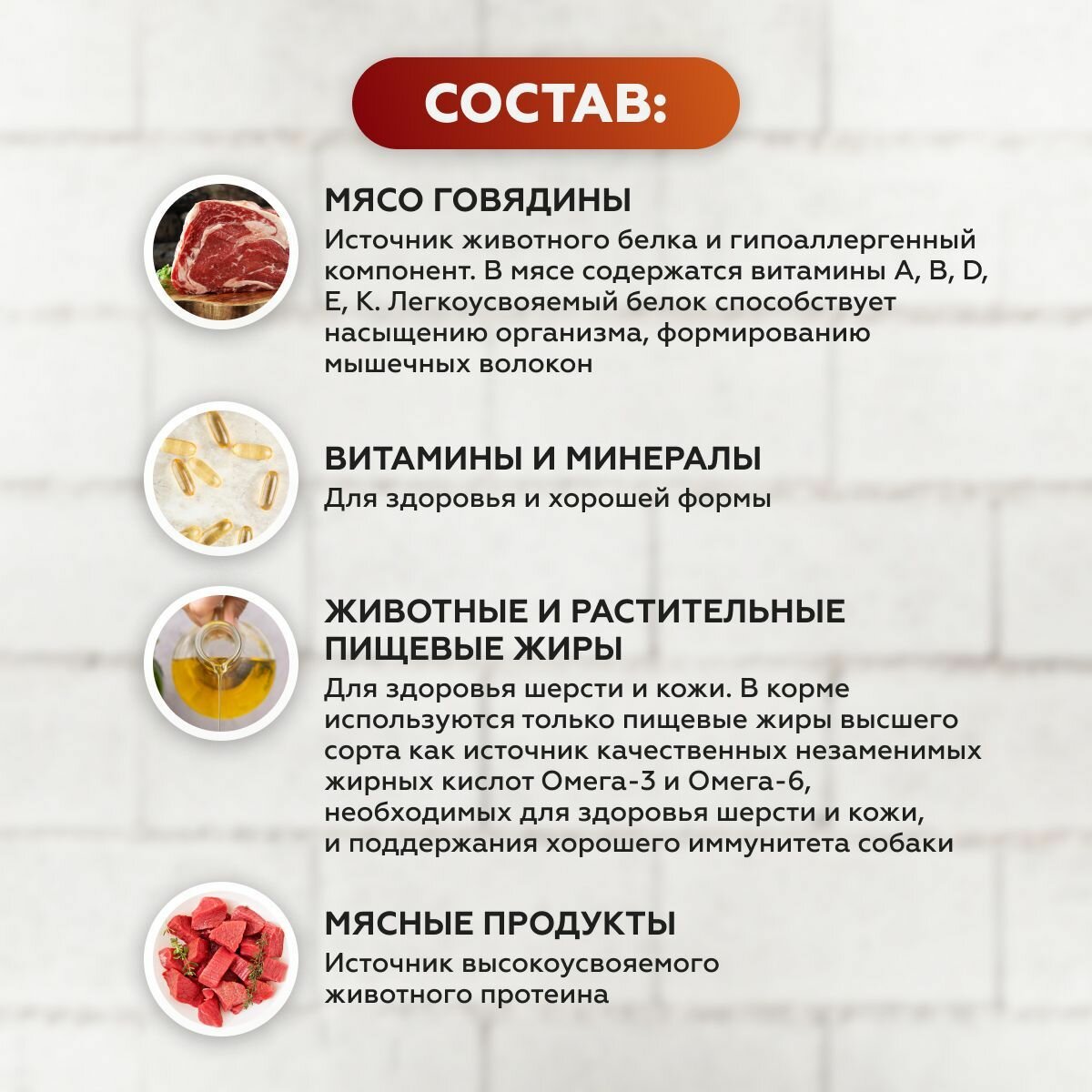 Сухой полнорационный корм для собак Puffins, Жаркое из говядины, 500гр