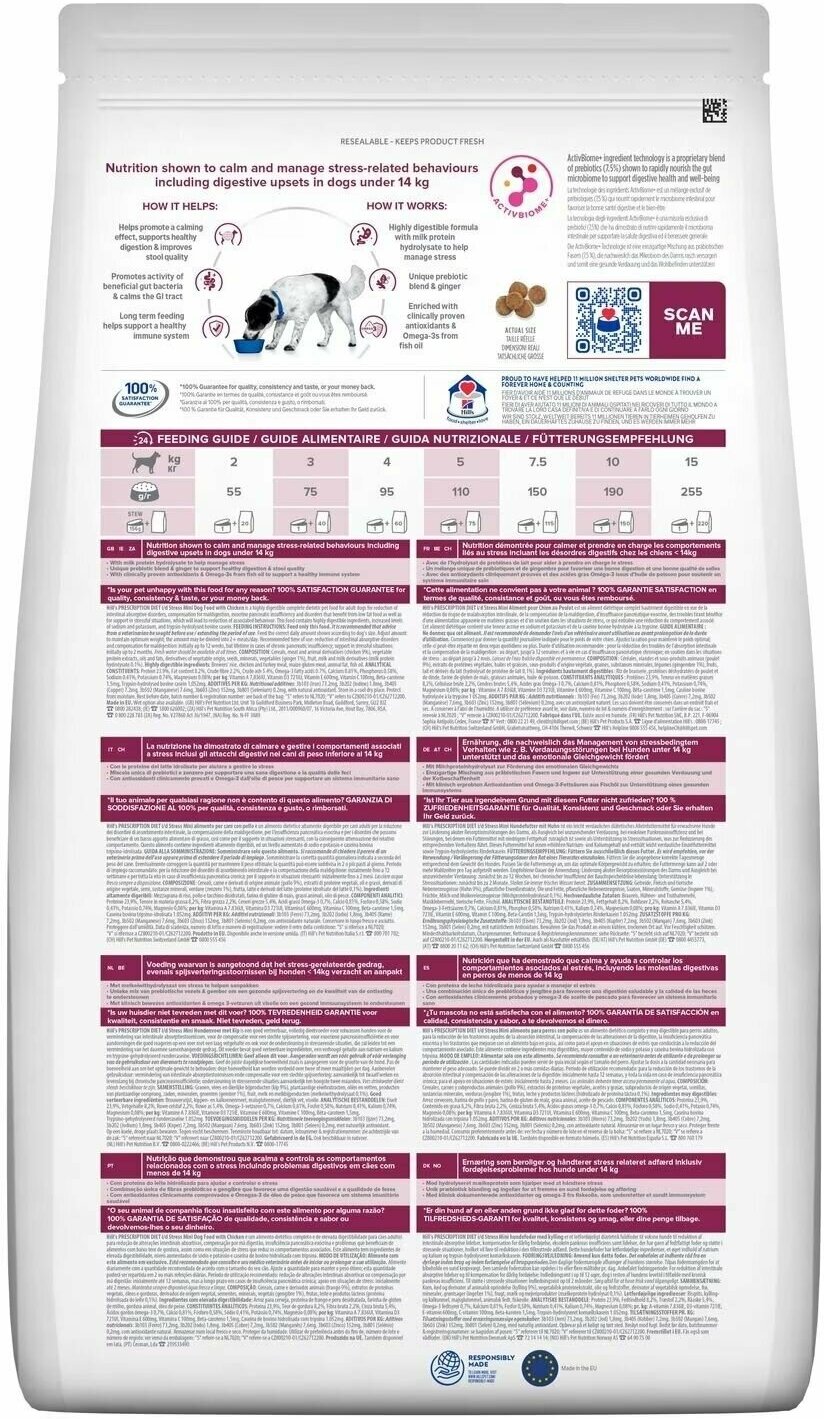Сухой корм для собак мелких пород Hill's Prescription Diet i/d Stress Mini Digestive Care при расстройствах жкт вызванных стрессом, с курицей, 1 кг