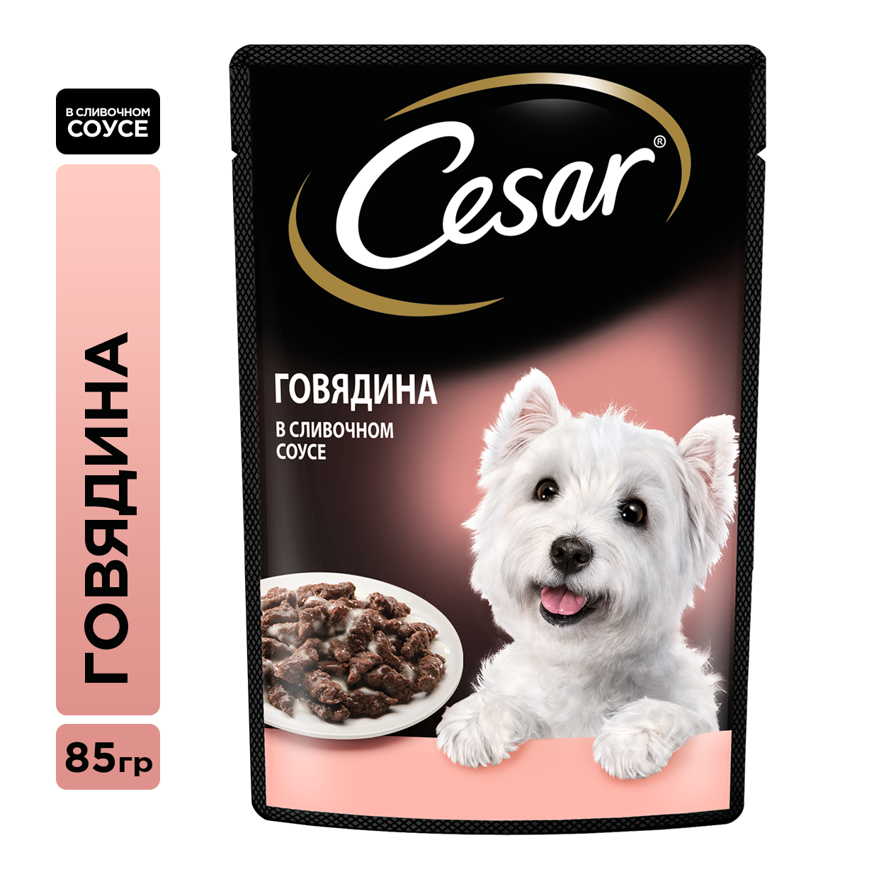 Влажный корм Cesar для собак, говядина в сливочном соусе, пауч, 85 г