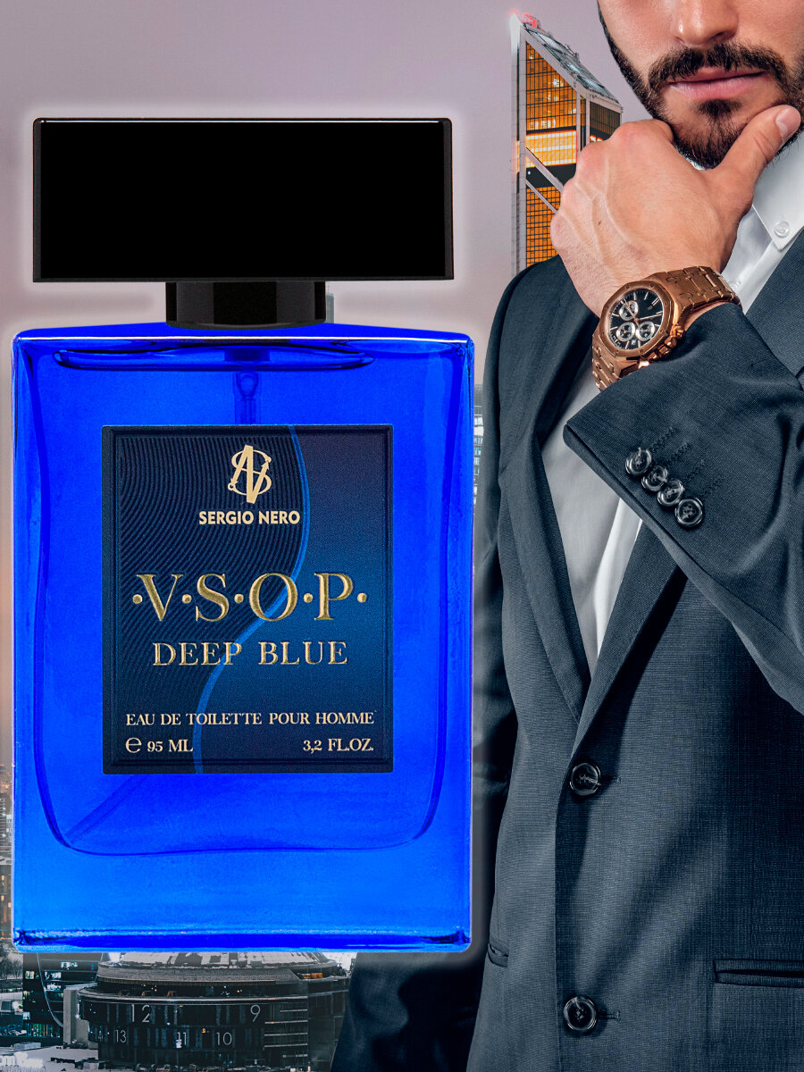 Sergio Nero Туалетная вода для мужчин Vsop Deep Blue (Всоп дип блу) древесный, пряный, спрей 95 мл в футляре