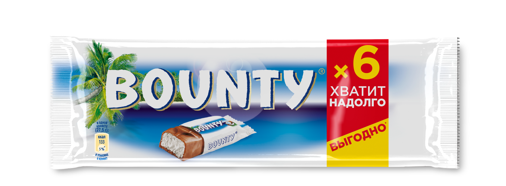 Батончик Bounty с нежной мякотью кокоса, мультипак, 27.5 г, 6 шт.