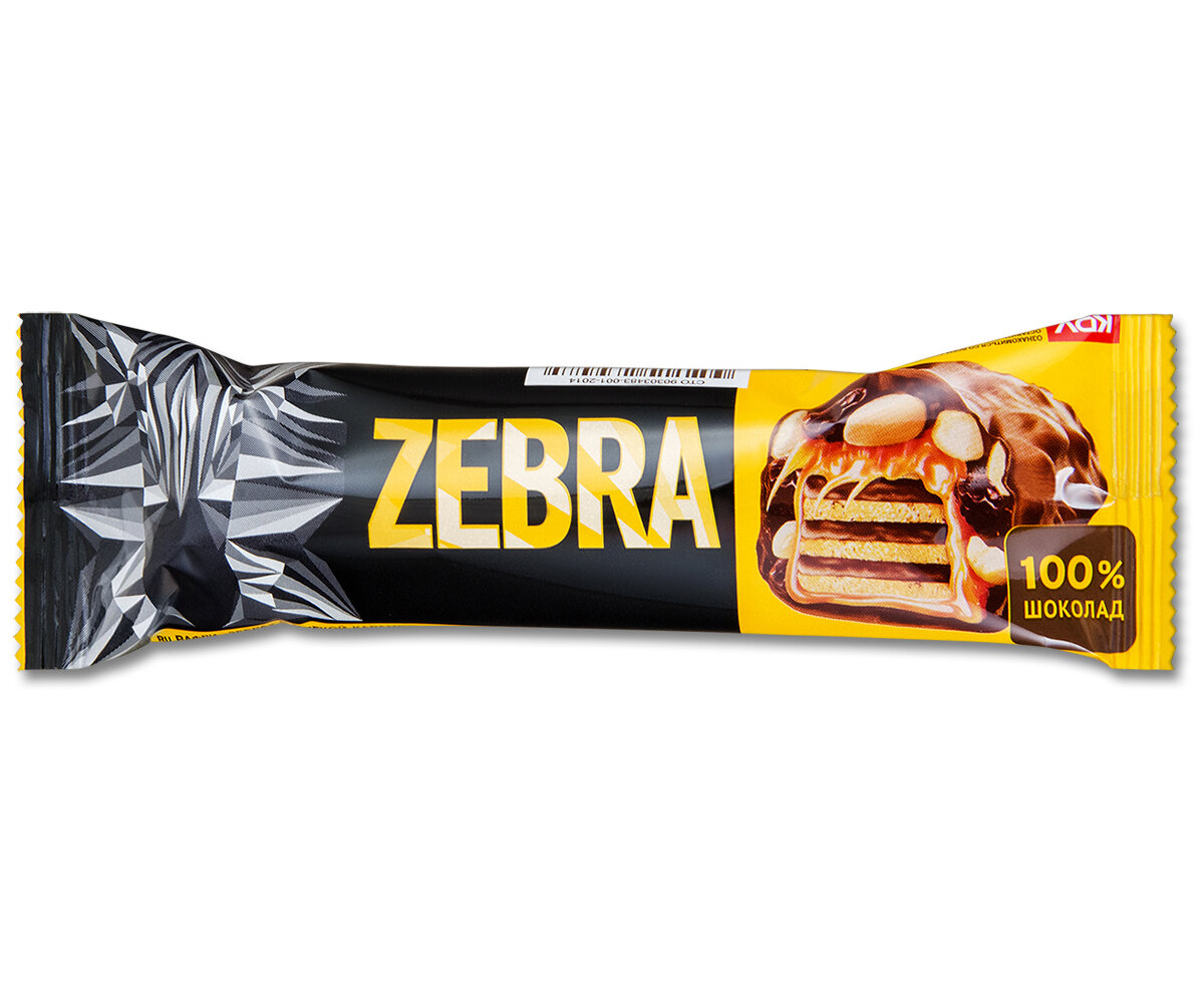 Батончик вафельный глазированный ZEBRA с изюмом и арахисом в мягкой карамели, 40 г, в шоубоксе, ЯВ252 - 15 шт.