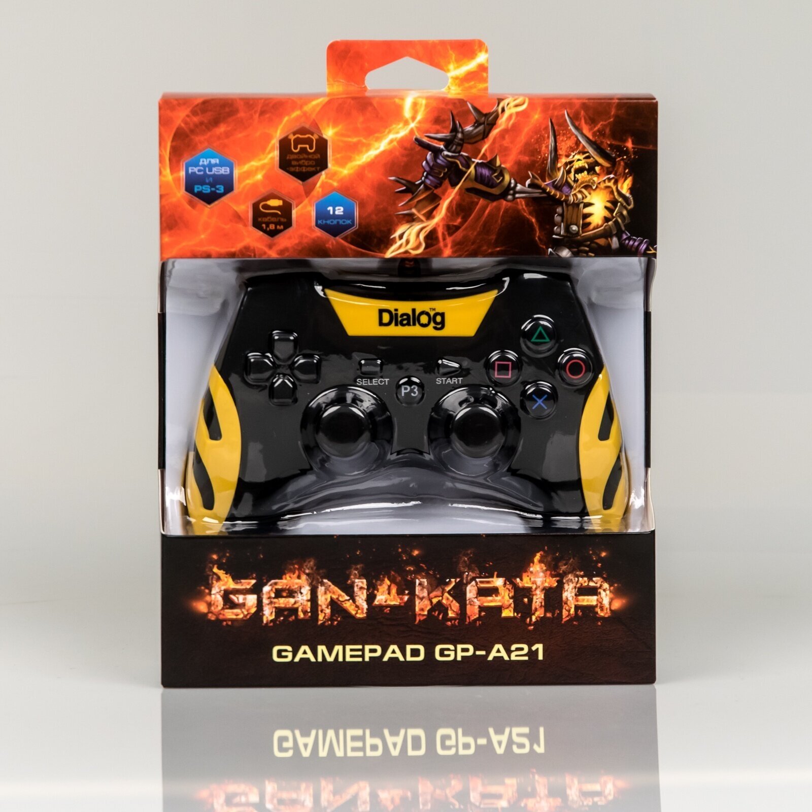 Геймпад Dialog GP-A21, вибрация, 12 кнопок, чёрно-жёлтый, прорезиненный - usb, PS3