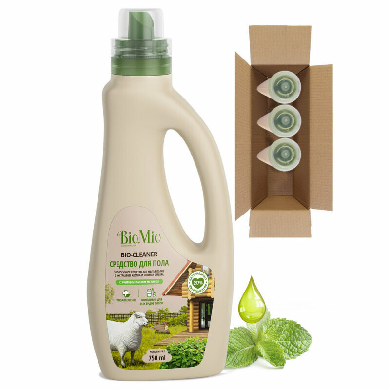 Средство для пола BioMio Bio-Floor Cleaner, гипоаллергенное, экологичное, с эфирным маслом мелиссы, 750 мл