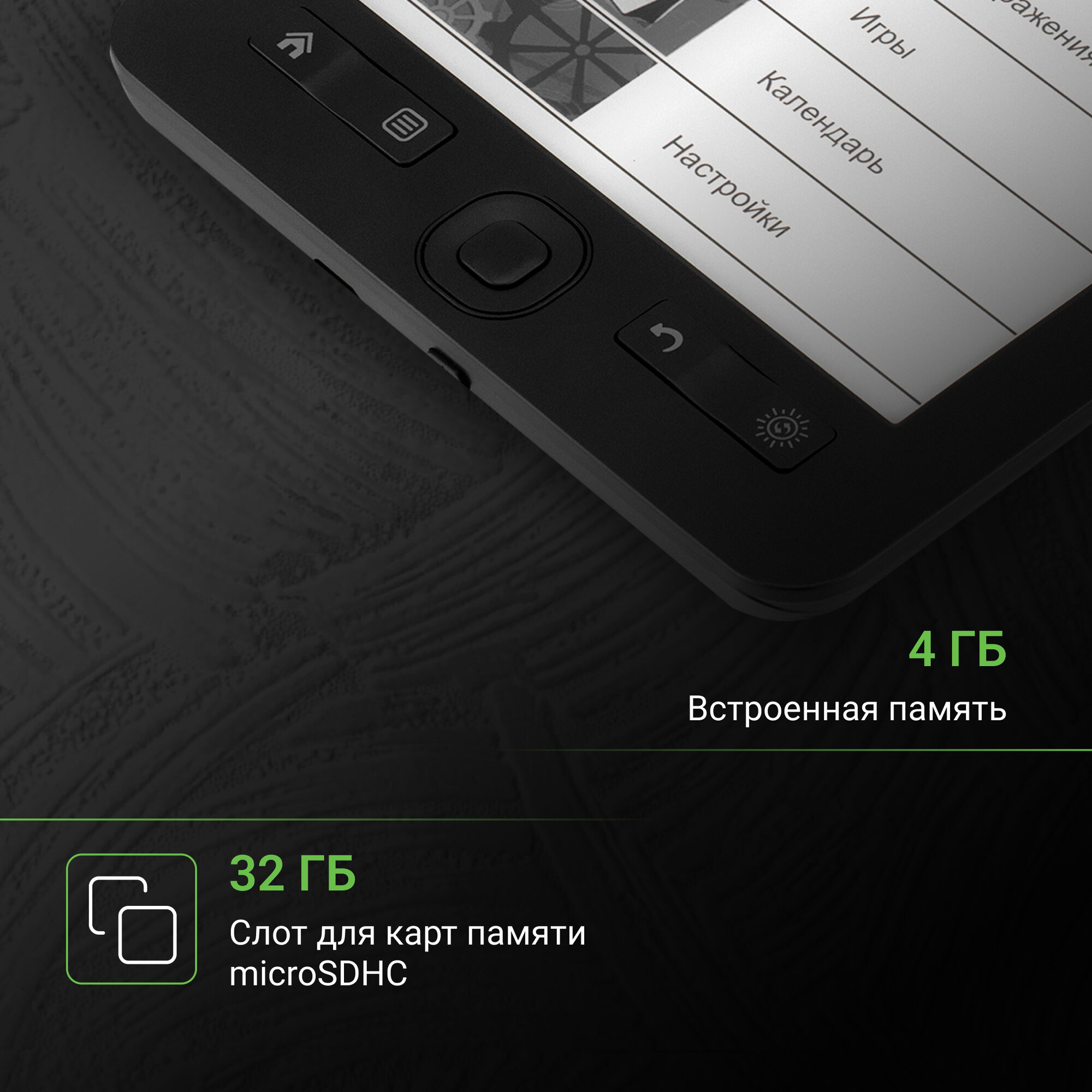 | Тип дисплея | E-Ink |
