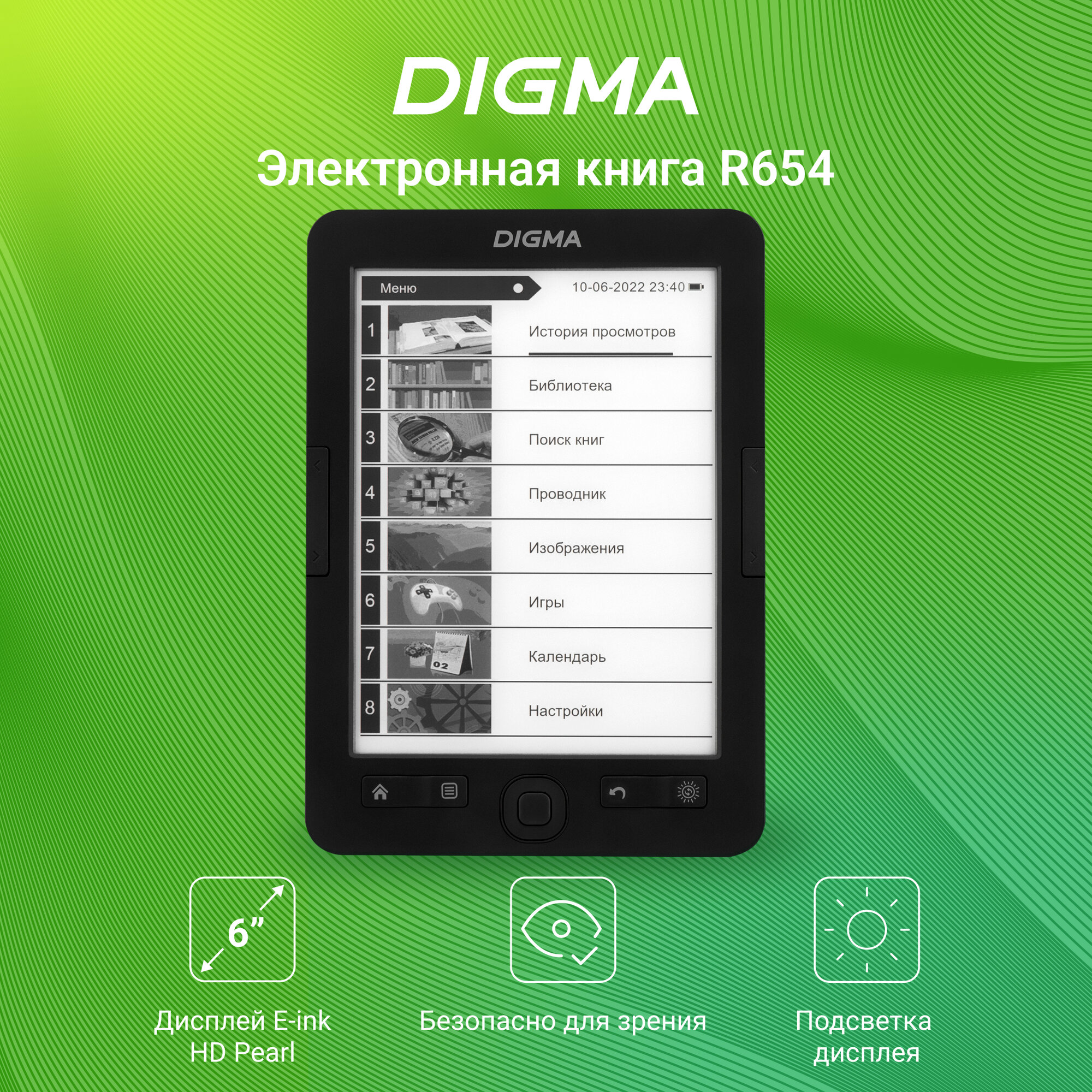 Электронная книга Digma R654 6" с подсветкой