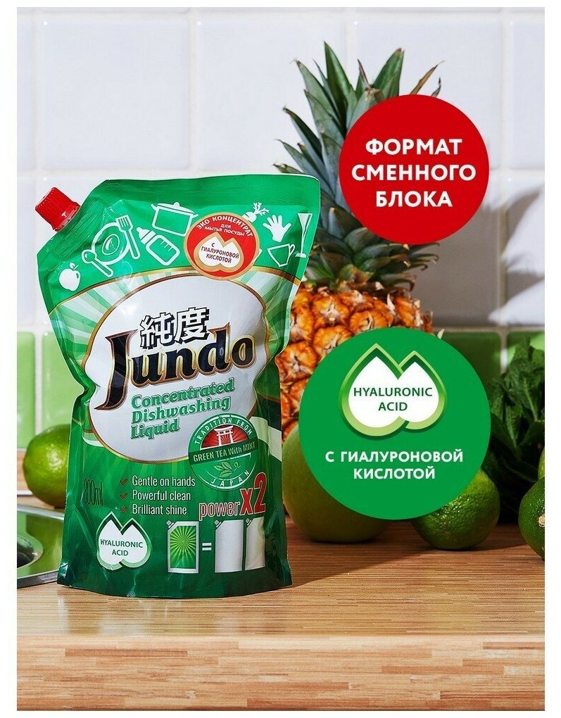 Гель для мытья посуды JUNDO Green tea with Mint Зеленый чай, концентрированный, 800 мл, м/у