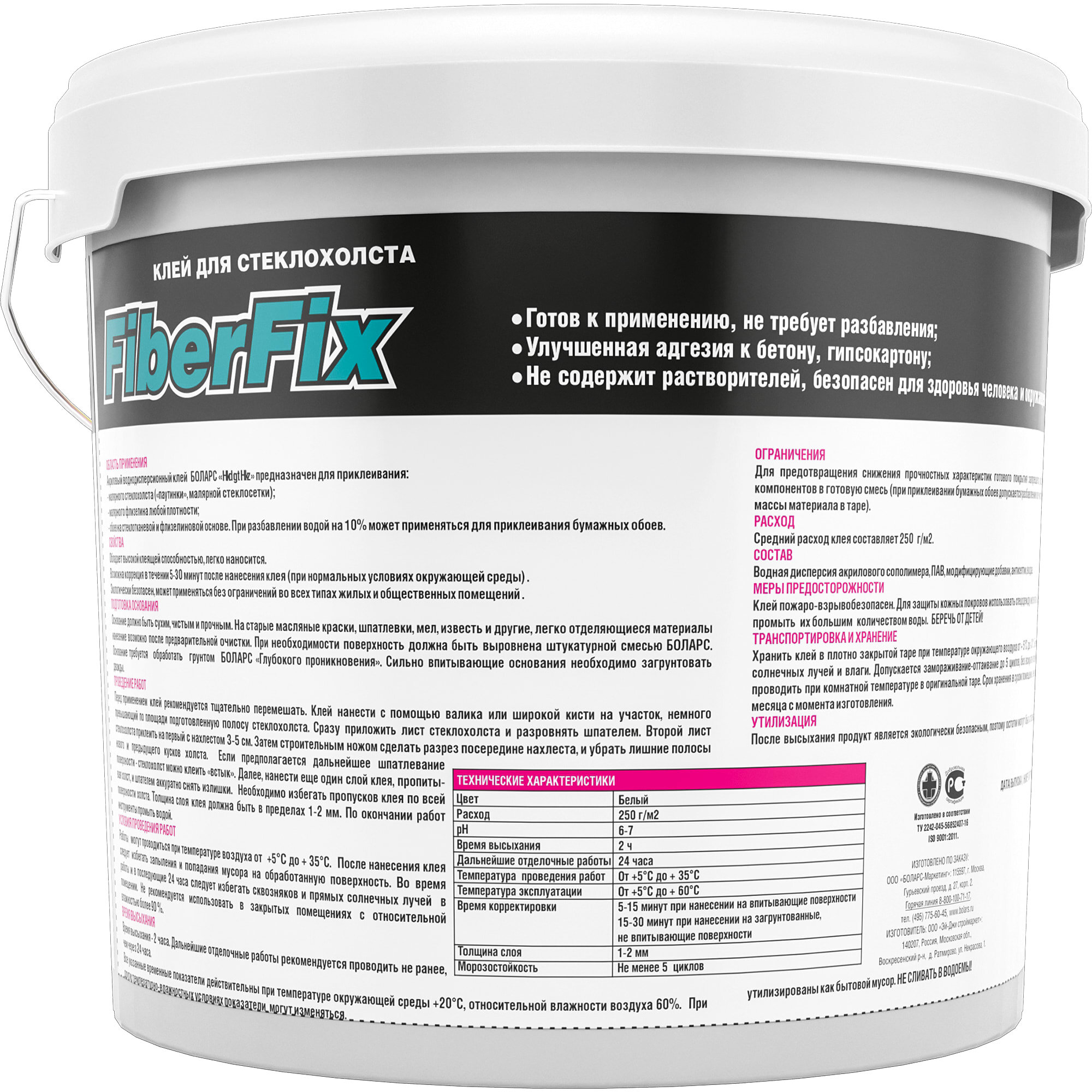 Боларс ФиберФикс клей готовый для стеклохолста (10кг) / боларс FiberFix клей готовый для стеклотканевых или флизелиновых обоев, паутинки, малярной сте интересное: