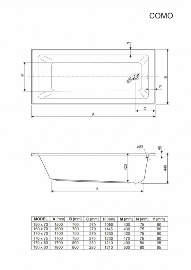 Ванна акриловая Cezares Plane Solo Mini 170х70 PLANE SOLO MINI-170-70-42-W37
