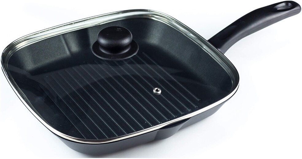Сковорода-гриль со стеклянной крышкой Panairo "Chief 2019", литой алюминий, 27*27 см .