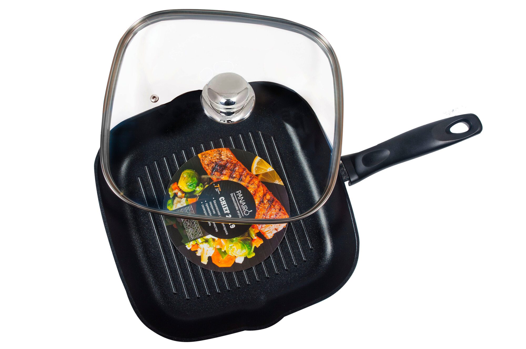 Сковорода-гриль с крышкой Panairo "Chief 2019", литой алюминий, 27*27 см