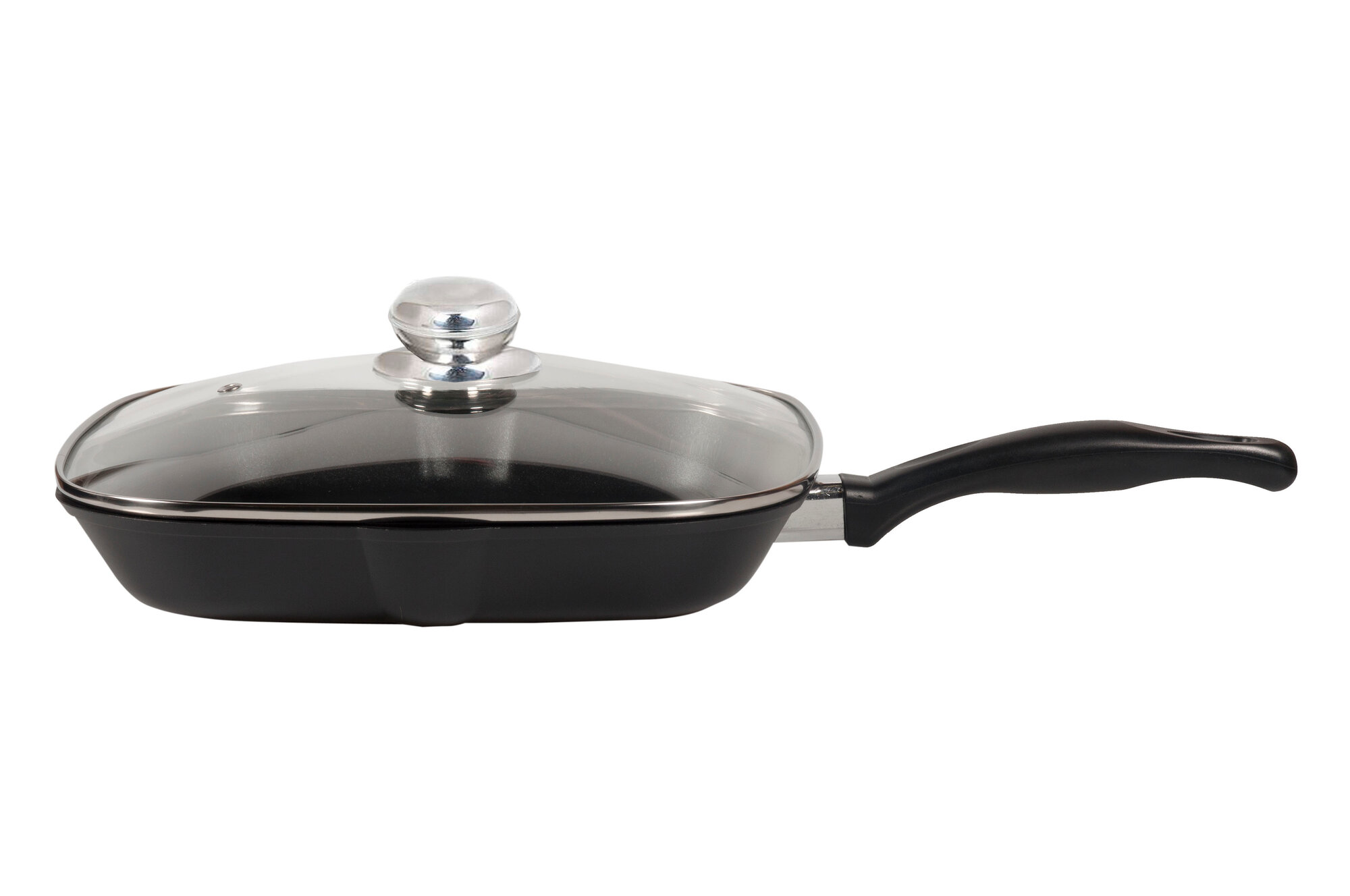 Сковорода -гриль 27*27см, со стеклянной крышкой, литой алюминий Panairo "Chief"
