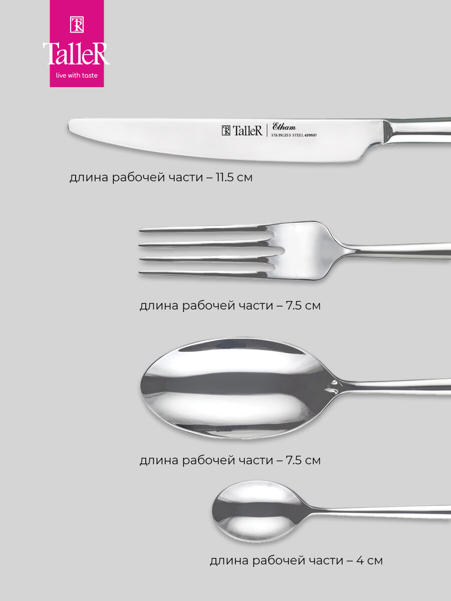 СохранитьTaller Набор столовых приборов Elham, 24 предмета серебристая сталь 6 24 шт. интересное: