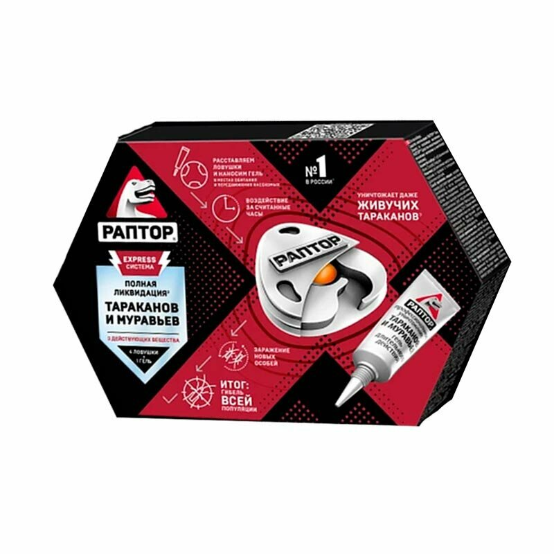 Средство от насекомых: тараканов и муравьев, Система ликвидации, Раптор: 4 клеевые ловушки + гель , 1 шт интересное: