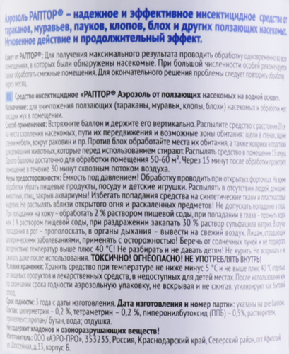 Аэрозоль от ползающих насекомых Раптор, 200 мл