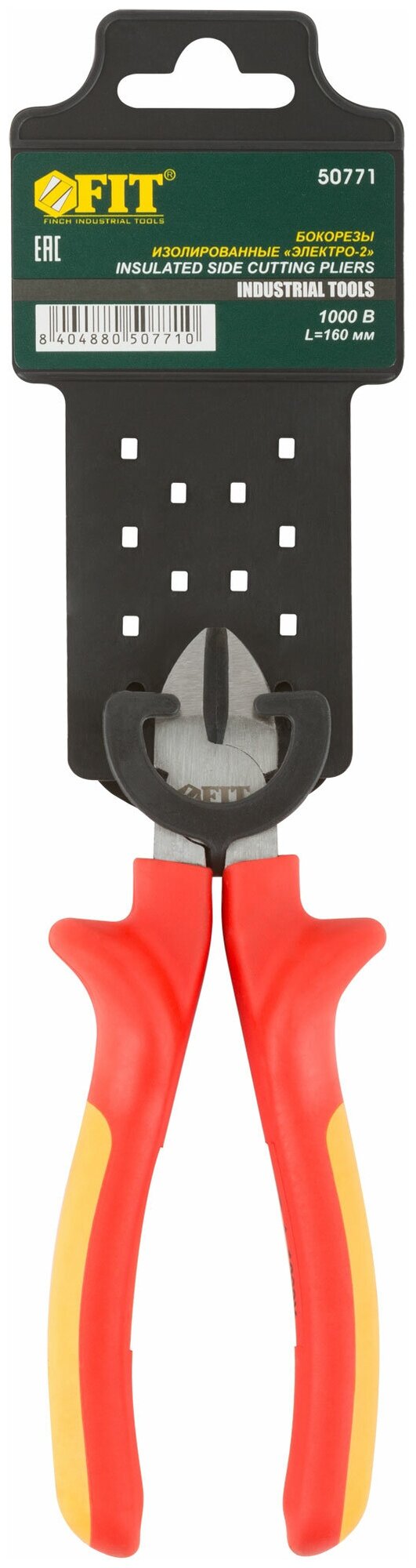 Бокорезы FIT Электро-2, 1000 В, высокоуглеродистая сталь, прорезиненные ручки, 160 мм 50771