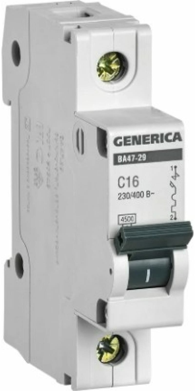 Купить Выключатель автоматический однополюсный ВА47-29 16А C 4,5кА GENERICA. MVA25-1-016-C IEK