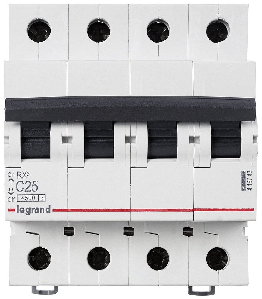 Выключатель автоматический модульный 4п C 25А 4.5кА RX3 Leg, LEGRAND 419743 (1 шт.)