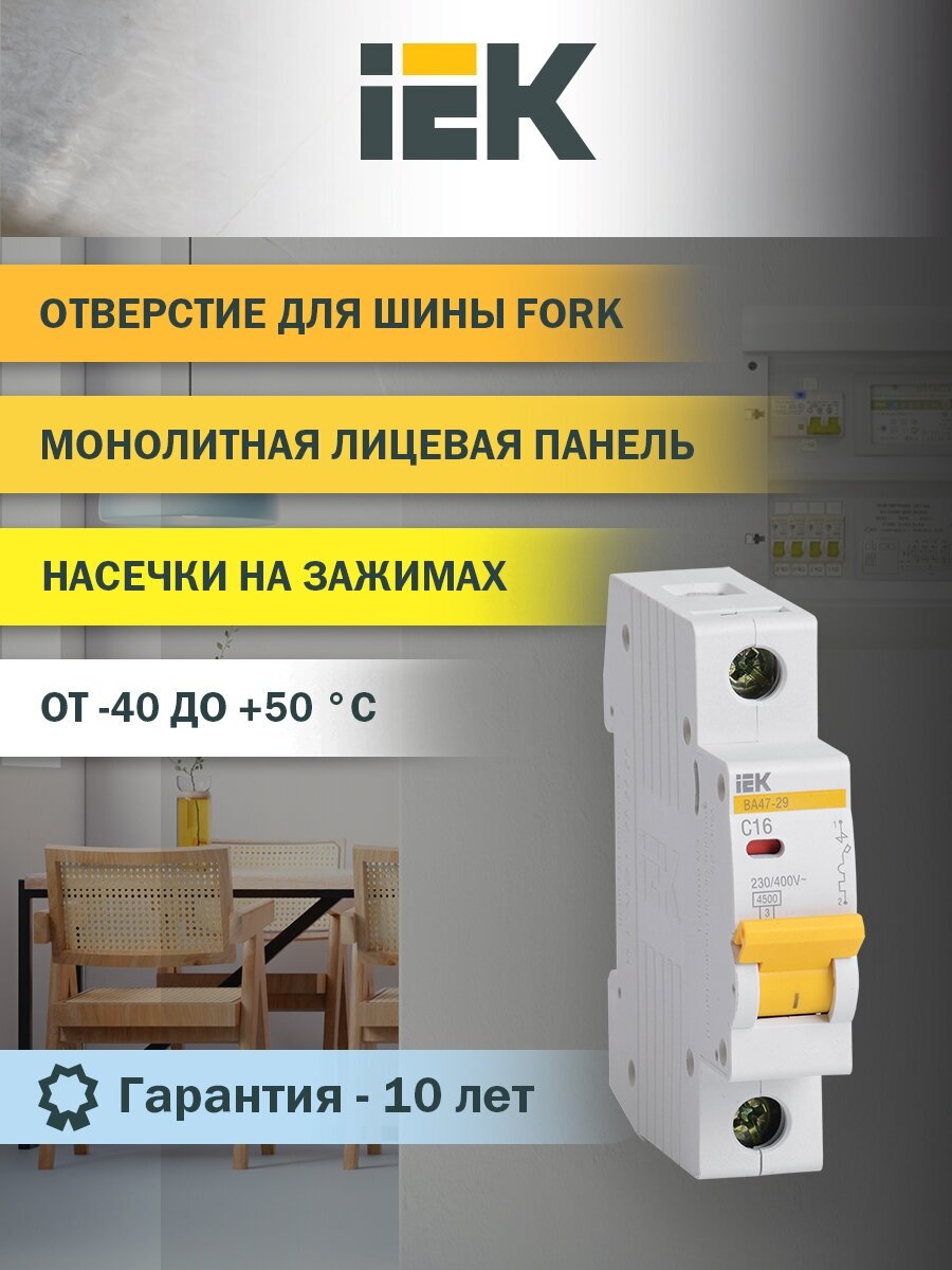 Автоматический выключатель IEK Home ВА47-29 1P C16 А 4.5 кА