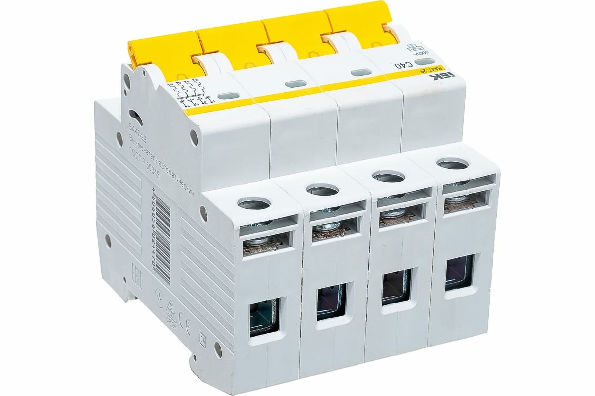 Ниже Вы можете прочитать отзывы на Модульный автоматический выключатель ВА47-29 4 полюса, 40А, х-ка C. MVA20-4-040-C IEK, ознакомится с подробными характеристиками, посмотреть интересные обзоры и фотографии на Модульный автоматический выключатель ВА47-29 4 полюса, 40А, х-ка C. MVA20-4-040-C IEK.
