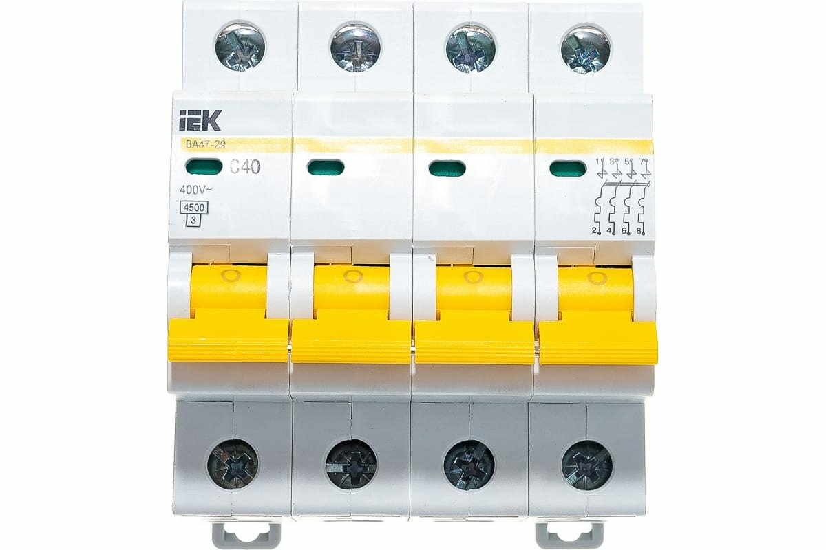 2шт. - Выключатель автоматический четырехполюсный 40А С ВА47-29 4.5кА / IEK; арт. MVA20-4-040-C; оригинал / - комплект 2шт