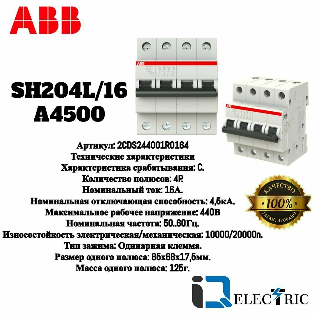 автомат ABB SH 4/16 А SH204L C16 2CDS244001R0164