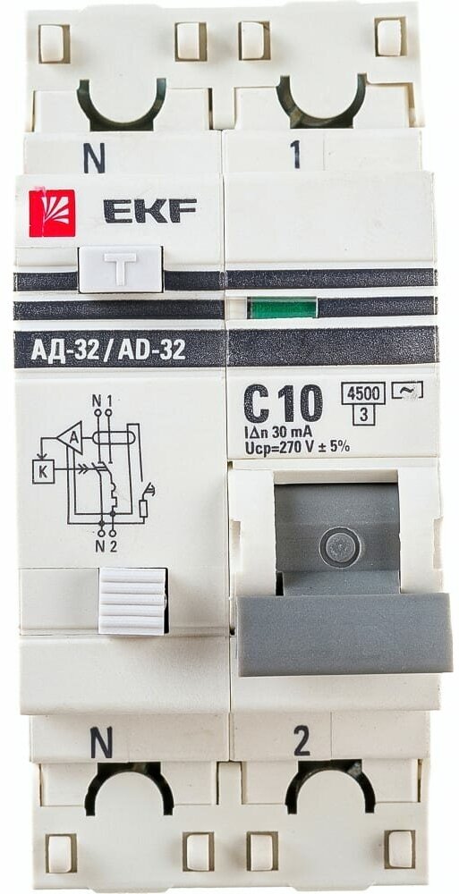 Дифференциальный автомат EKF АД-32 1P+N 10А/30мА 4,5кА PROxima SQDA32-10-30-pro .