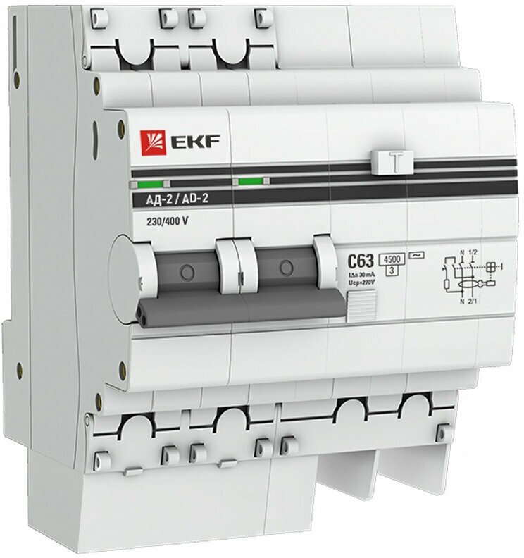 Дифференциальный автомат EKF PROxima АД-32 1P+N 63А 30мА 4_5кА