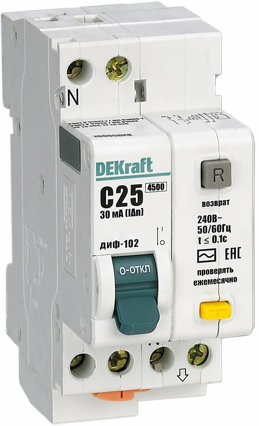 Диф. автомат DEKraft 1Р+N 25А 30мА тип AC х-ка С ДИФ-102 4,5 кА