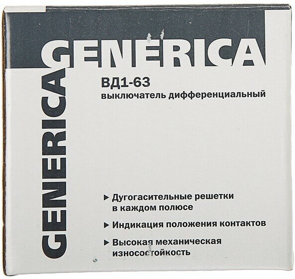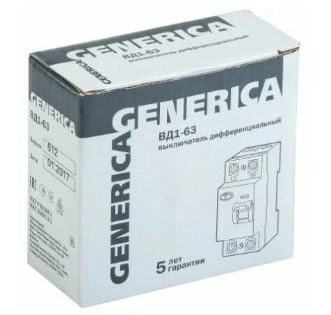 УЗО выключатель дифференциальный ВД1-63 2Р 63А 30мА GENERICA