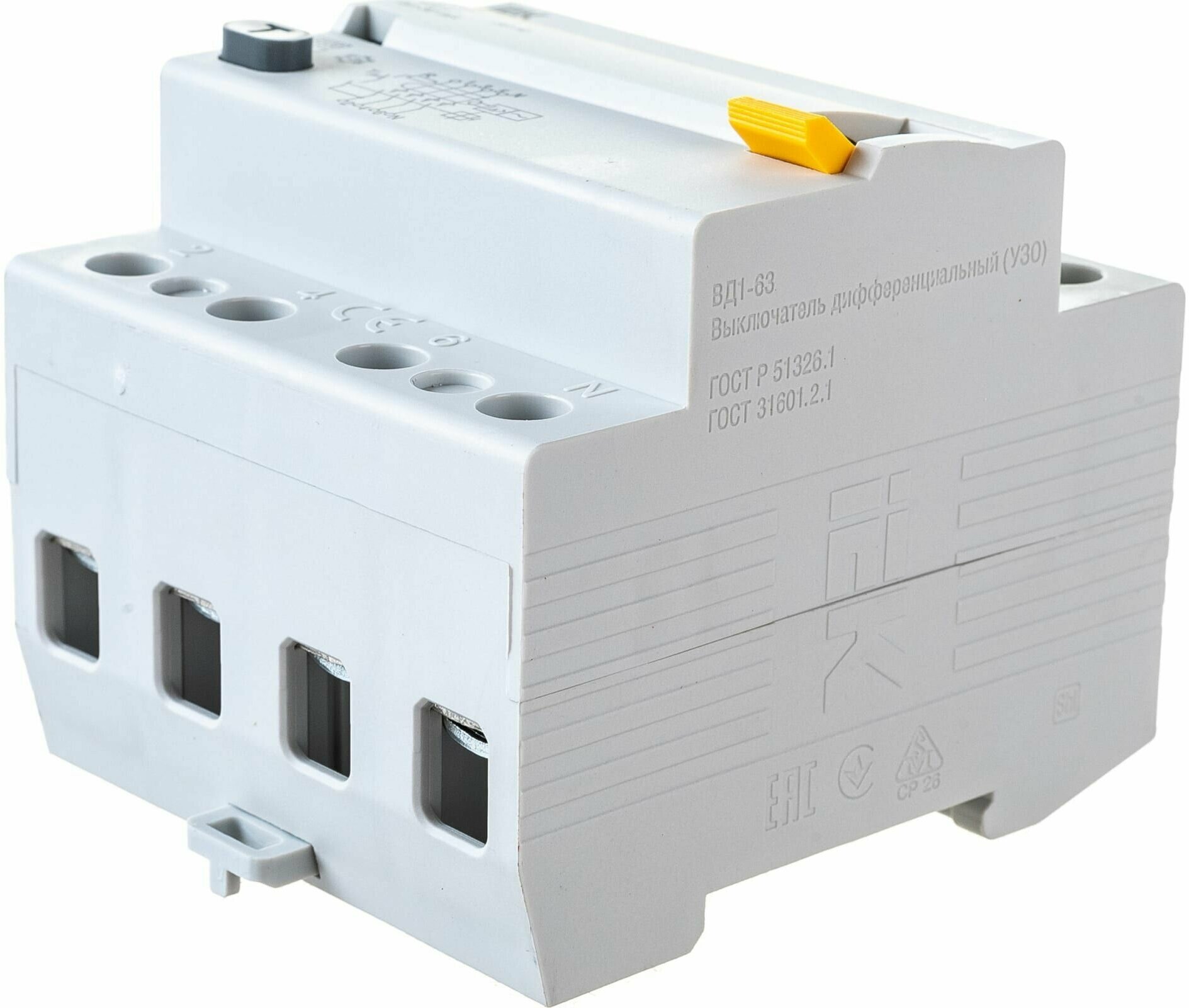 Выключатель дифференциального тока (УЗО) 4п 63А 30мА тип AC ВД1-63, IEK MDV10-4-063-030 (1 шт.)