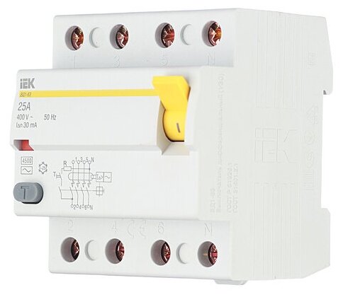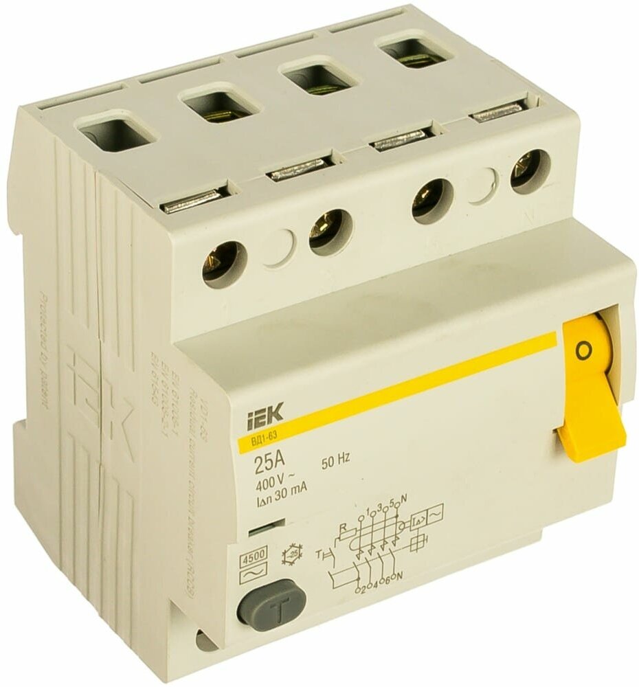 УЗО IEK Karat ВД1-63 25А 30 мА 4P тип АС 4,5 кА (MDV10-4-025-030)