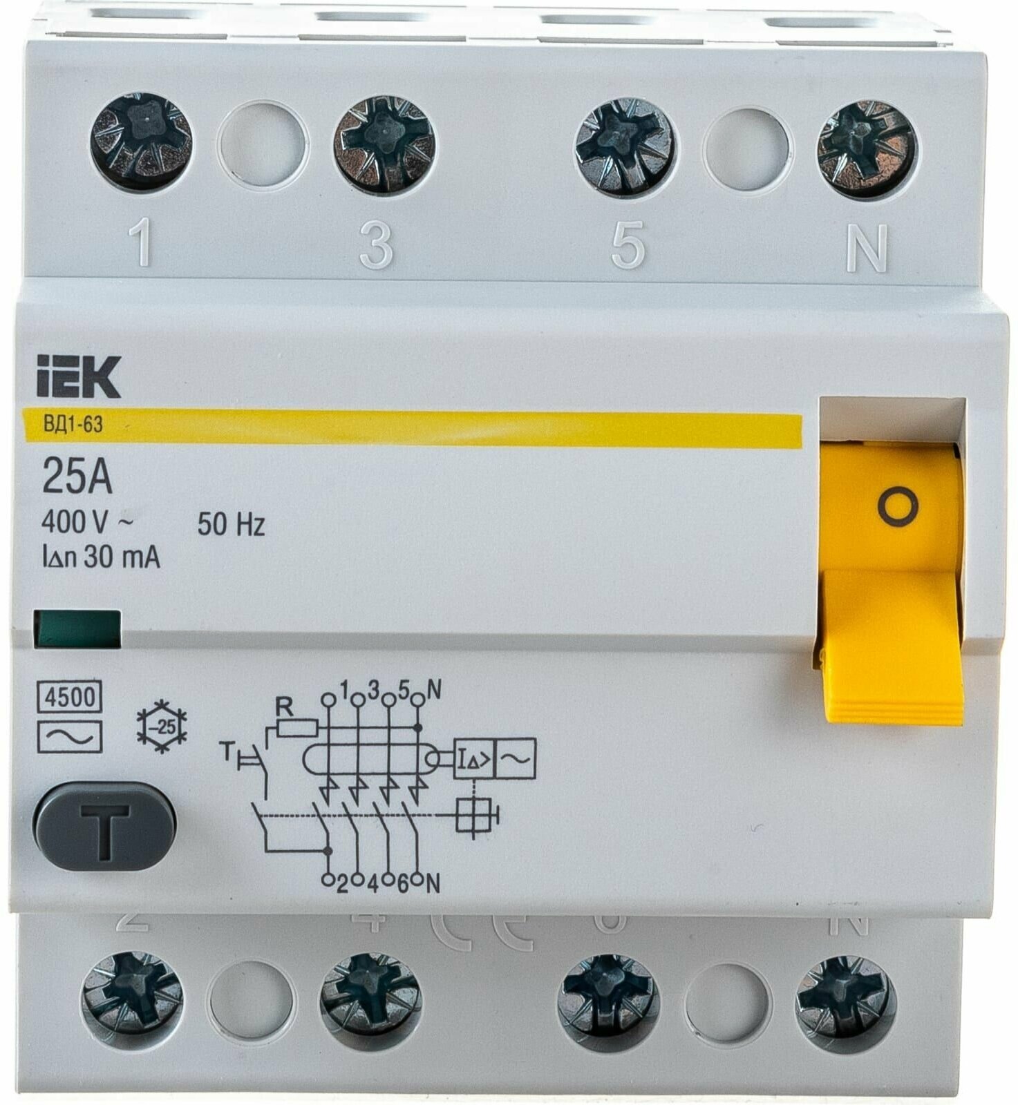 УЗО IEK ВД1-63 (MDV10-4-025-030) 25А 30 мА 4P тип АС 4,5 кА