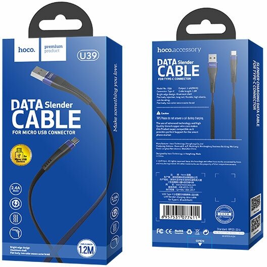 USB Hoco U39 Slender Micro (L=1.2м) черный с синим
