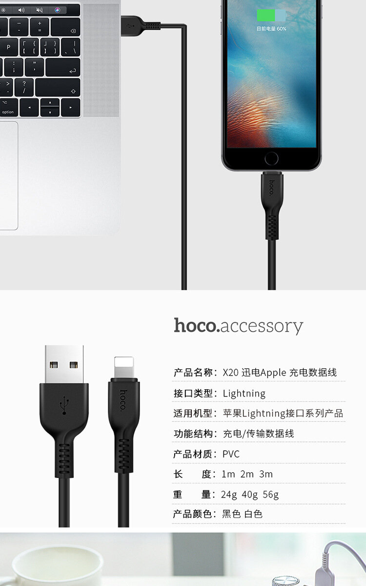 Кабель USB iPhone Lightning Hoco X20 <белый>