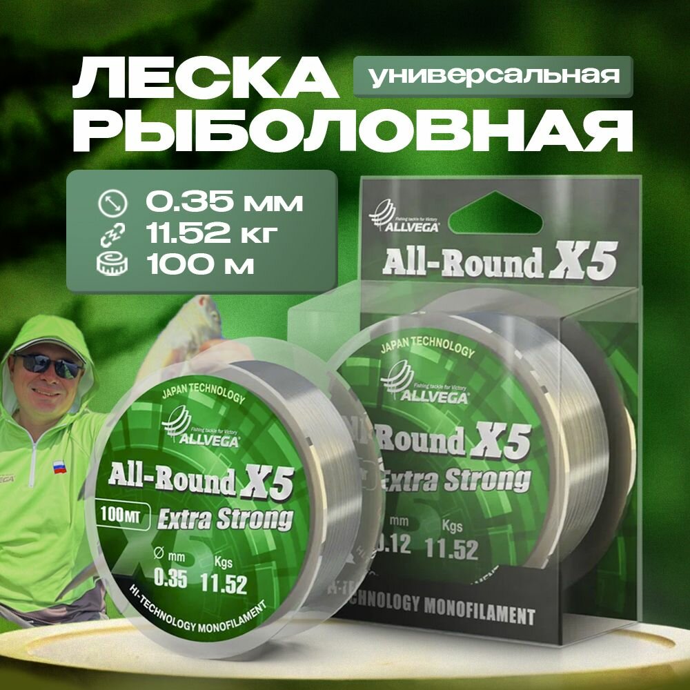 Купить Леска монофильная ALLVEGA "All-Round X5" 100м 0,35мм (11,52кг) прозрачная