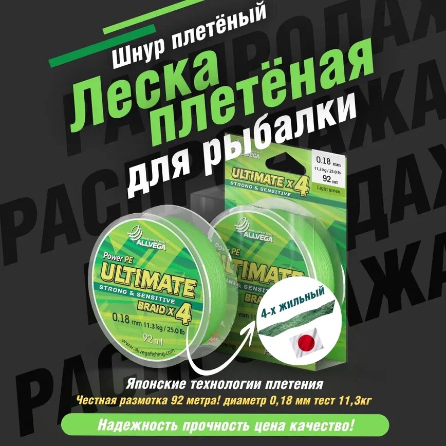 Купить Шнур плетёный ALLVEGA "Ultimate" 92м светло-зелёный 0,18мм (11,3кг)