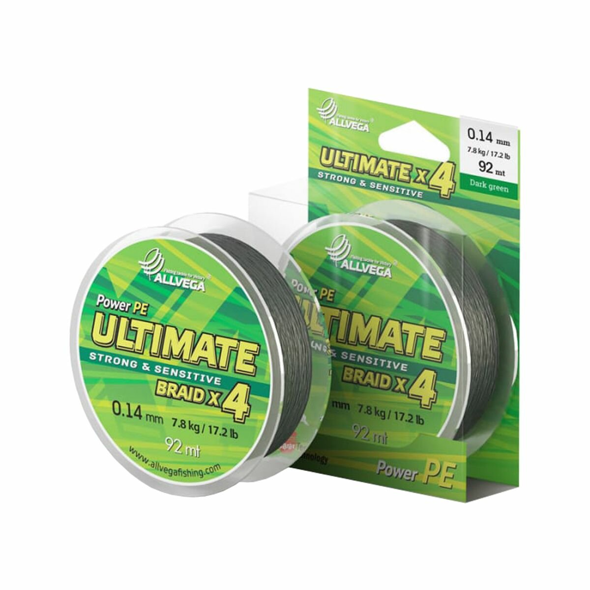 Купить Шнур плетёный ALLVEGA "Ultimate" 92м тёмно-зелёный 0,14мм (7,8кг)